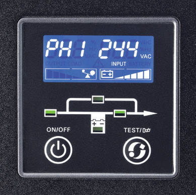 YönetilebilirlikUPS’in durumu ve ölçümleri için gerekli bilgileri tek bir ekranda yeni geliştirilmiş LCD ekran verir. Yük durumu, akü durumu, giriş/çıkış voltaj değeri ve frekansları LCD ekranda kolayca görülebilir.